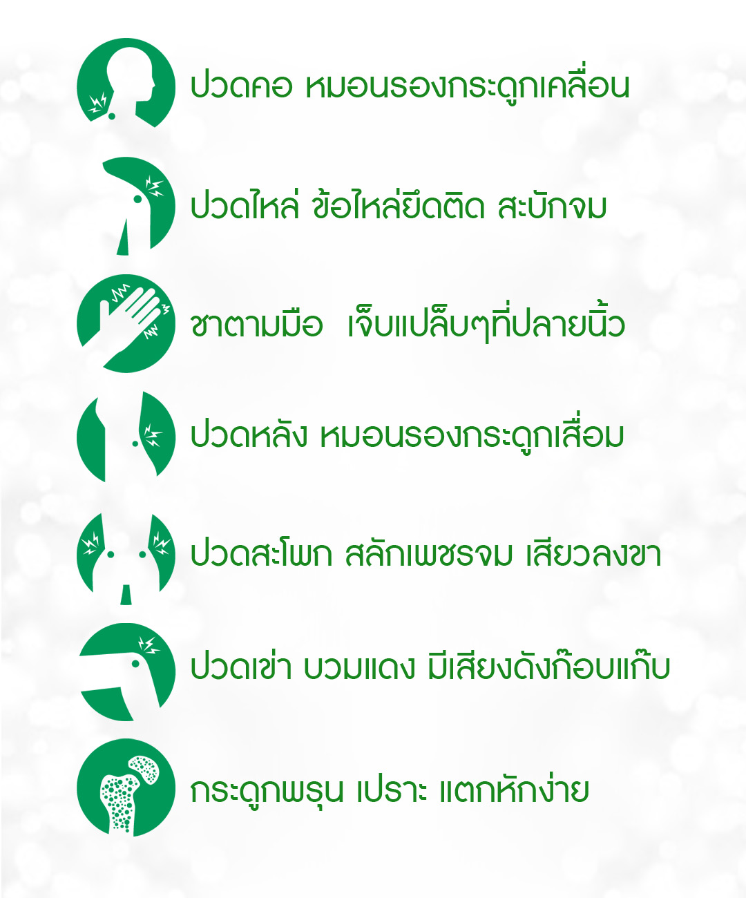 กระดูกอ่อนปลาฉลาม เสริมเยื่อเมือก ลดการเสียดสีของกระดูกบริเวณข้อ ช่วยคงสภาพของน้ำไขข้อกระดูก บรรเทาและฟื้นฟูอาการข้อเสื่อม ปวดอักเสบ บวม และซ่อมแซมกระดูกอ่อน