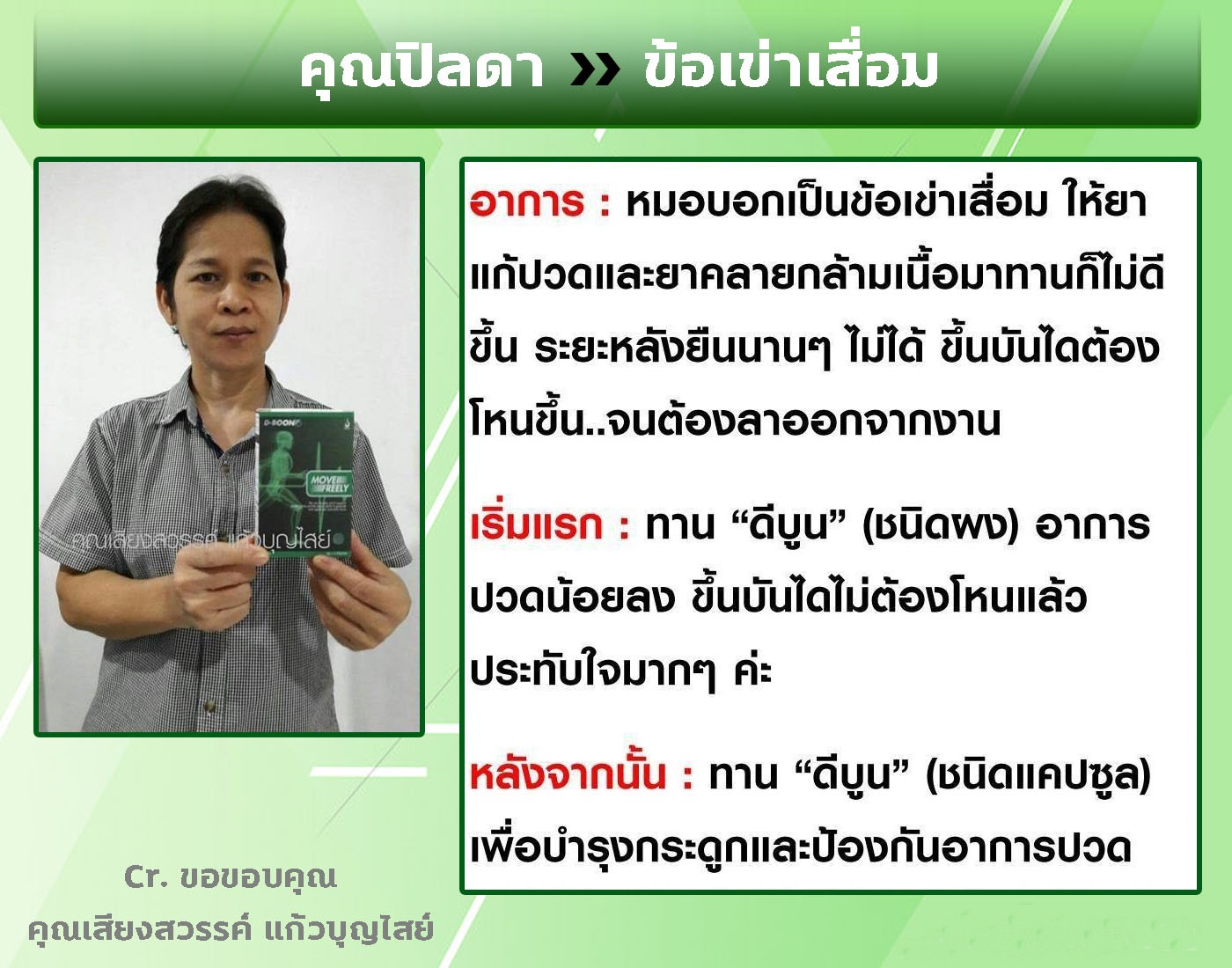 Q: ปวดหลัง ปวดไหล่ ทานดีบูน ได้หรือไม่? ทานดีบูนแล้วจะดีขึ้นหรือเปล่า?